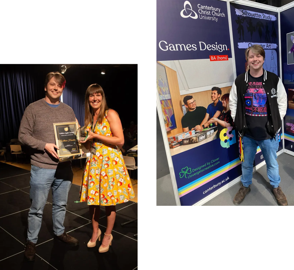 Will has done so much for every single student on the games design course – he is always a positive person and I don’t think I’ve ever seen him without a smile on his face. He supports everyone in whatever it is they’re doing – whether it’s support with programming, help with personal issues, or just making us all feel better about our work. I genuinely think without Will my first year on this course would have been very different and a lot harder, and I truly think he is so deserving of this award and more.