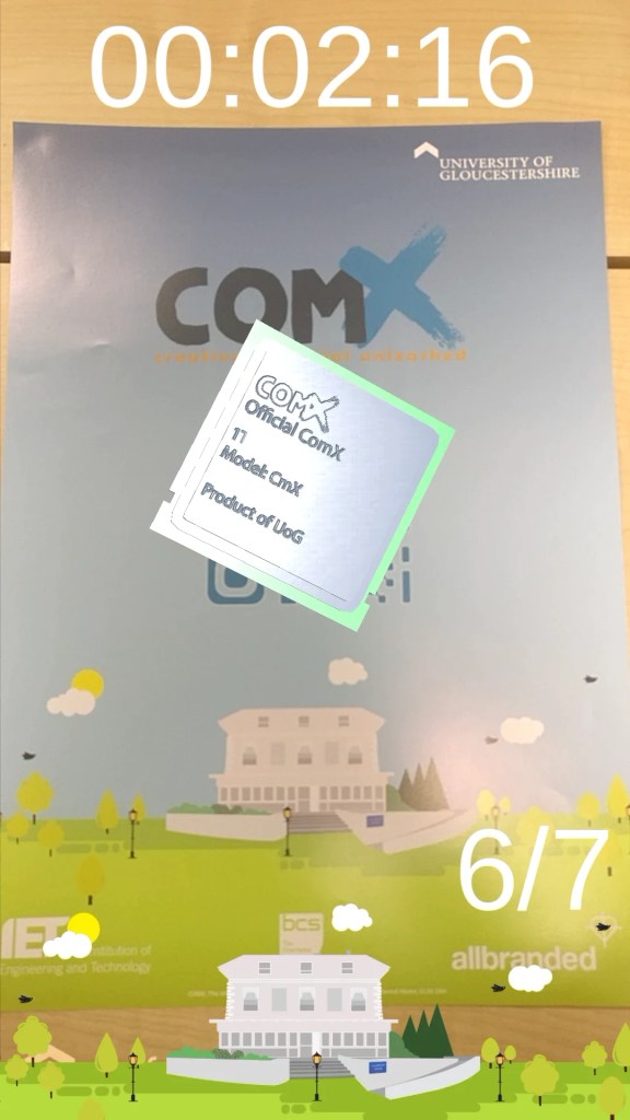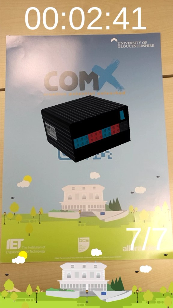 Developed with Unity 5, this AR Easter egg hunt was developed for Android and Apple mobile devices. Its primary objective was to address the aforementioned challenge, engaging around 200 attendees at the University of Gloucestershire’s annual creative computing showcase, ComX.